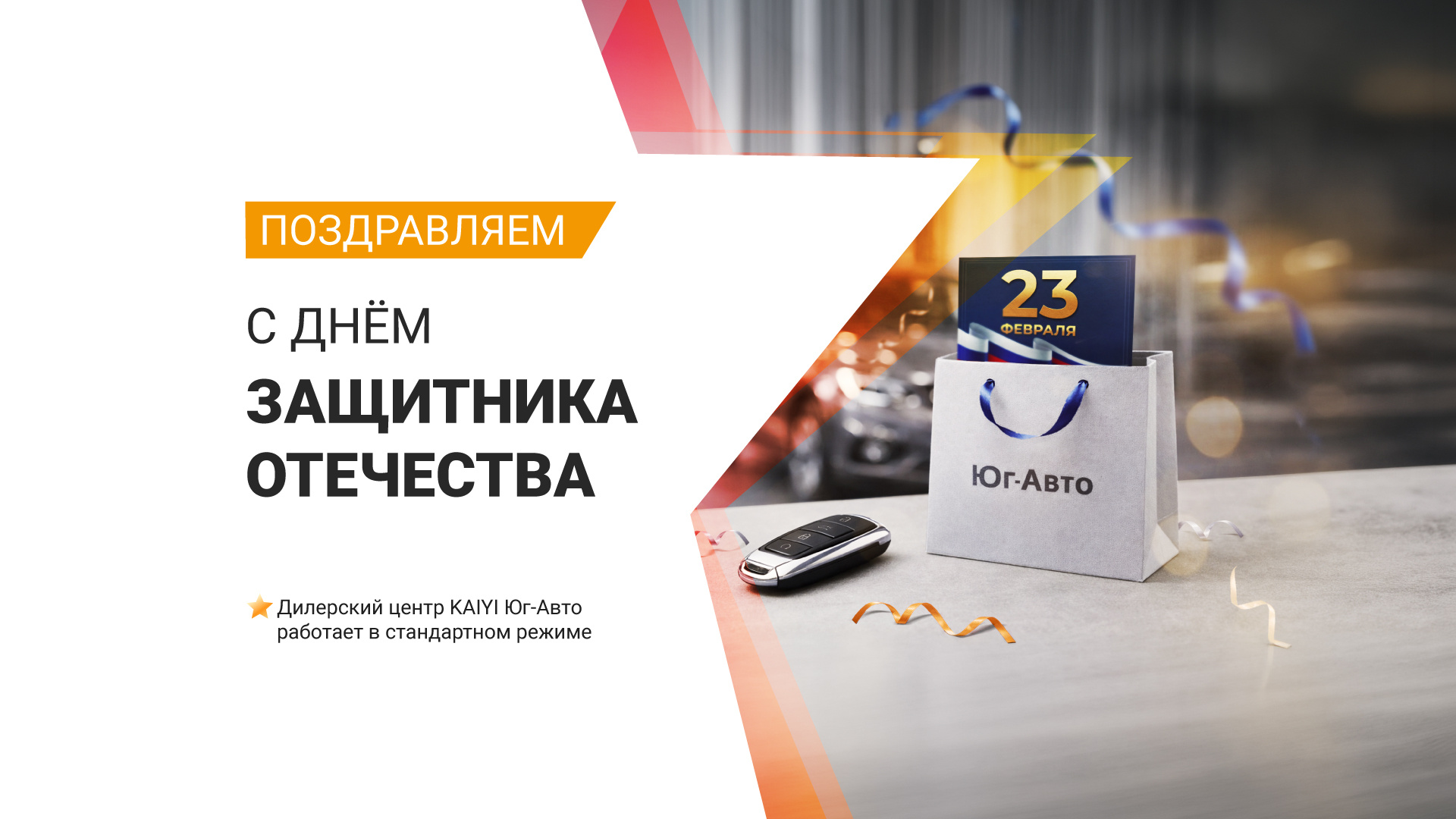 От имени всей команды дилерского центра KAIYI Юг-Авто поздравляем Вас с Днём защитника Отечества!